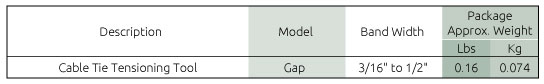 • Para cintas y abrazaderas hasta 5/8” de ancho.